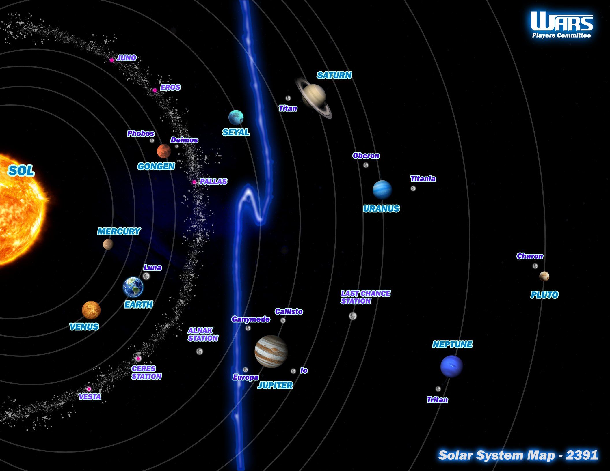 Solar System Map 2391Here is the current map of the Solar System in 2391, after the Rift and appearance of Seyal.
